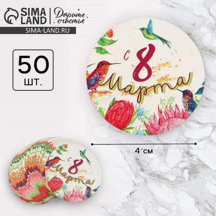 Наклейки для бизнеса и подарков «С 8 марта», 4 х 4 см, 50 шт