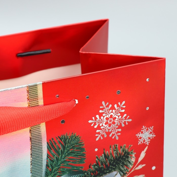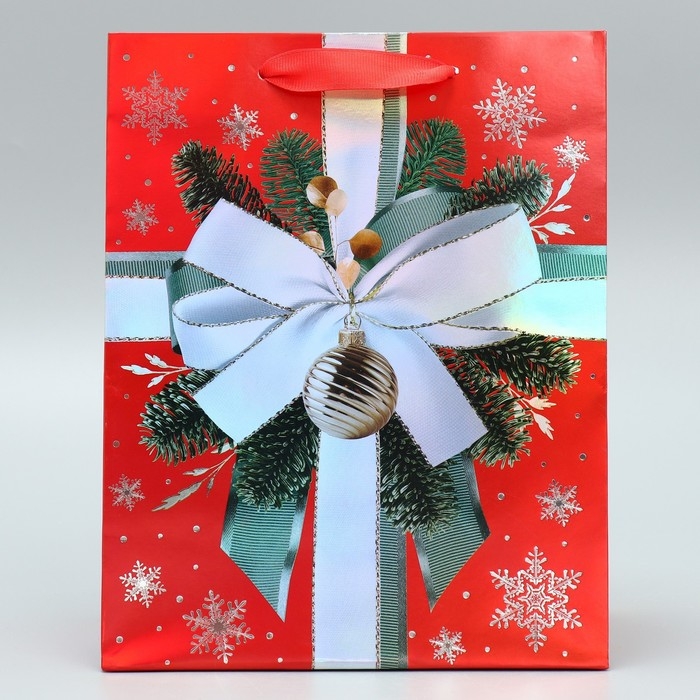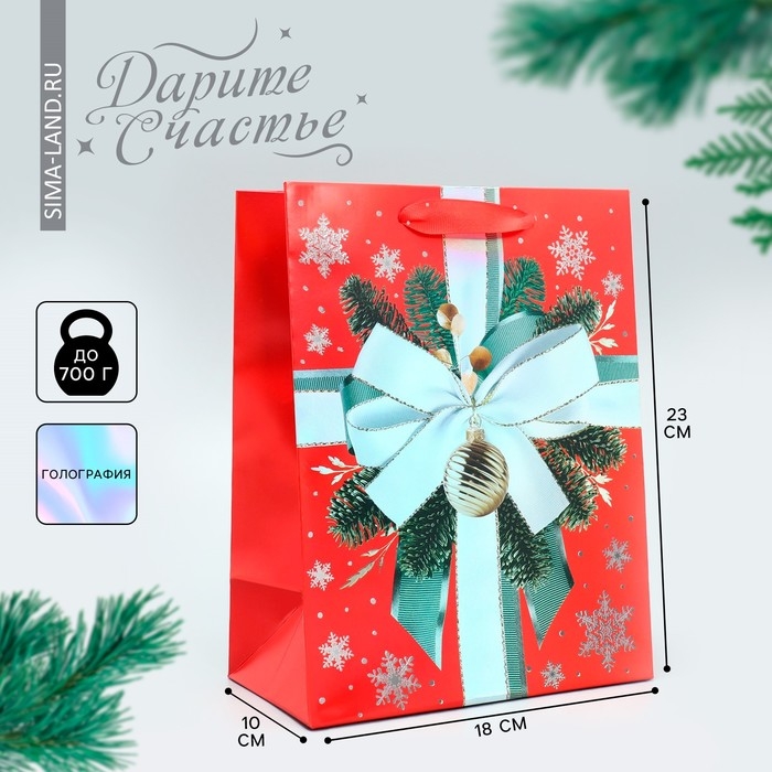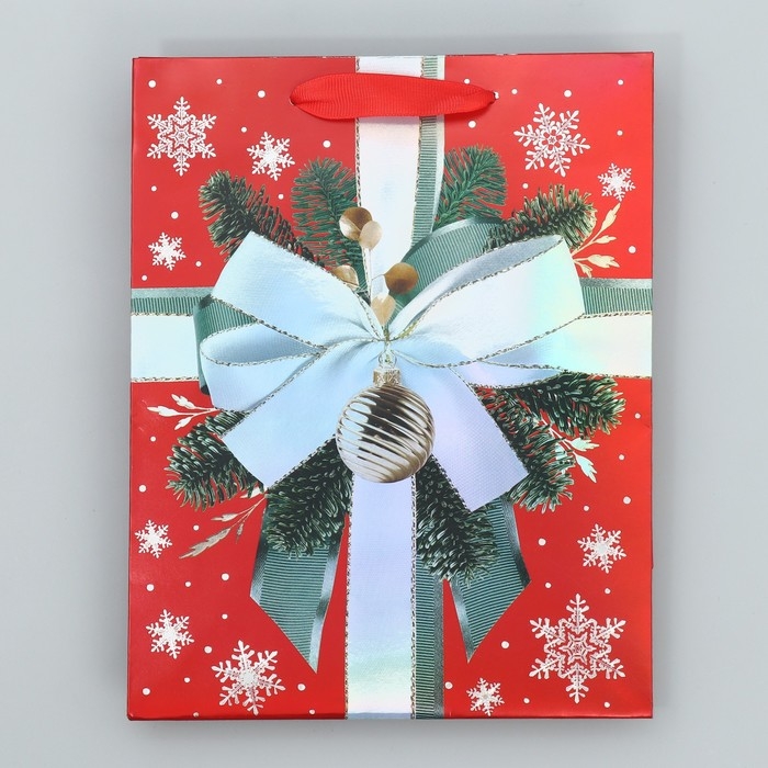 Пакет подарочный новогодний ламинированный «Новогодний бант», MS 18 х 23 х 10 см, Новый год