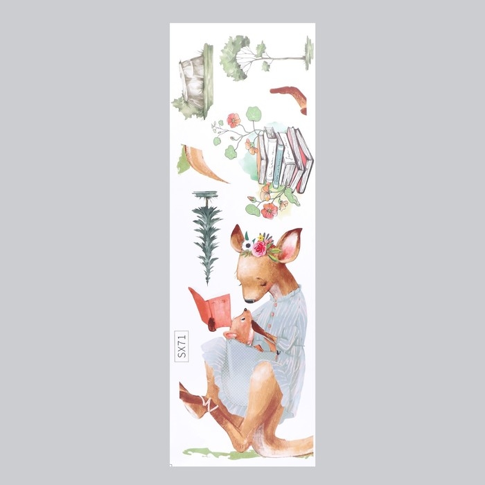 Наклейка пластик интерьерная цветная "Мама-кенгуру с малышом" 30х90 см