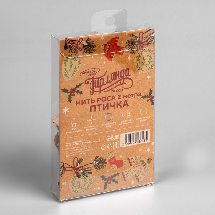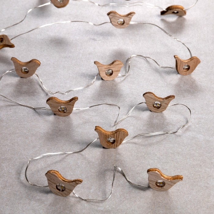Гирлянда «Нить» 2 м роса с насадками «Птичка», IP20, серебристая нить, 20 LED, батарейки ААх2 (нет в комплекте), свечение тёплое белое