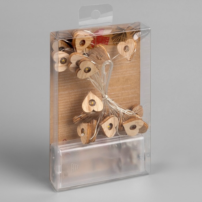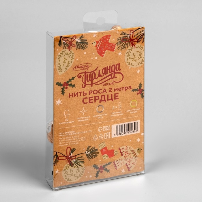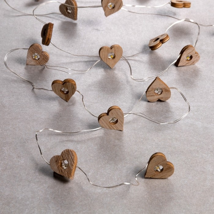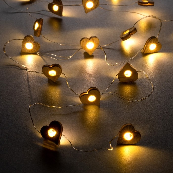 Гирлянда «Нить» 2 м роса с насадками «Сердце», IP20, серебристая нить, 20 LED, батарейки ААх2 (нет в комплекте), свечение тёплое белое