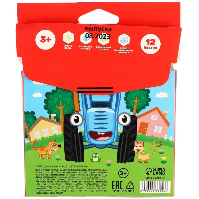 Фломастеры с кистью "Синий трактор", 12 цветов