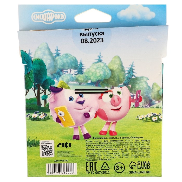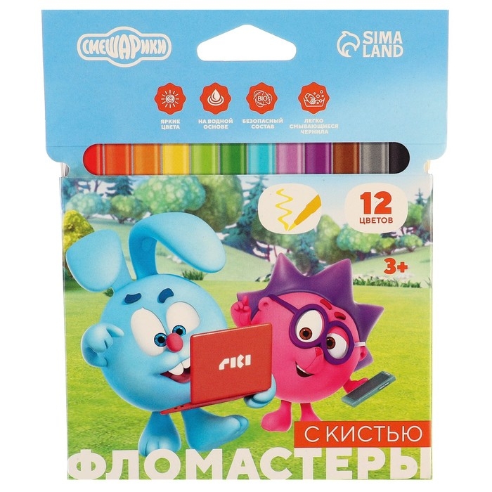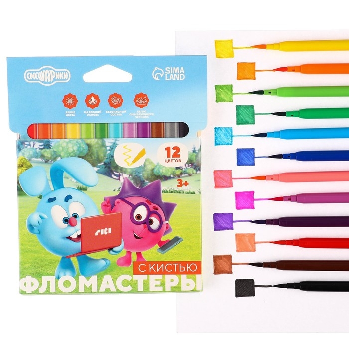 Фломастеры с кистью, 12 цветов, Смешарики