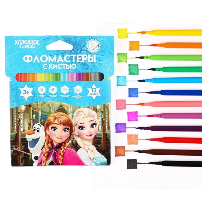 Фломастеры с кистью, 12 цветов, Холодное сердце
