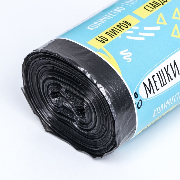 Мешки для мусора «Крепак», 60 л, с ручками, ПНД, 13 мкм, 60×80 см, 20 шт., чёрные