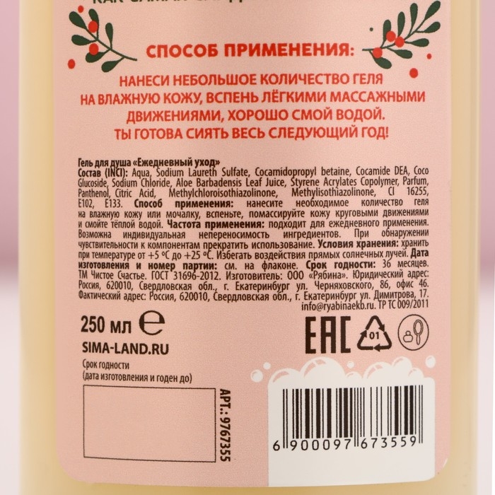 Новый Год. Гель для душа, гладкость и питание, 500 мл, аромат яблочного пирога