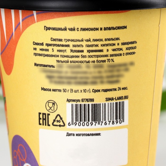 Чай гречишный в стакане, вкус: лимон и апельсин, 50 г (5 шт. х 10 г).