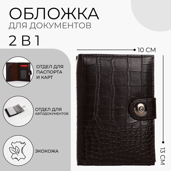 Обложка для документов 2 в 1: автодокументы, паспорт, цвет коричневый