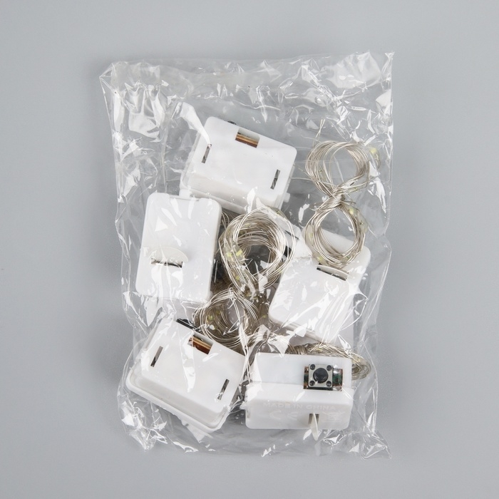 Набор гирлянд «Нить» 1 м роса, IP20, серебристая нить, 10 LED, свечение белое, 3 режима, батарейки AG13х3 (в комплекте), 5 шт.