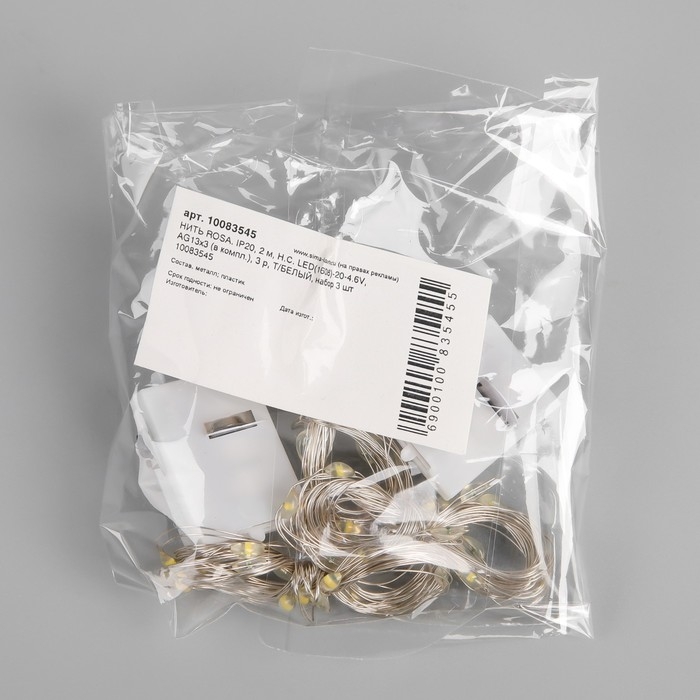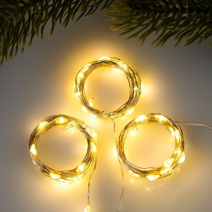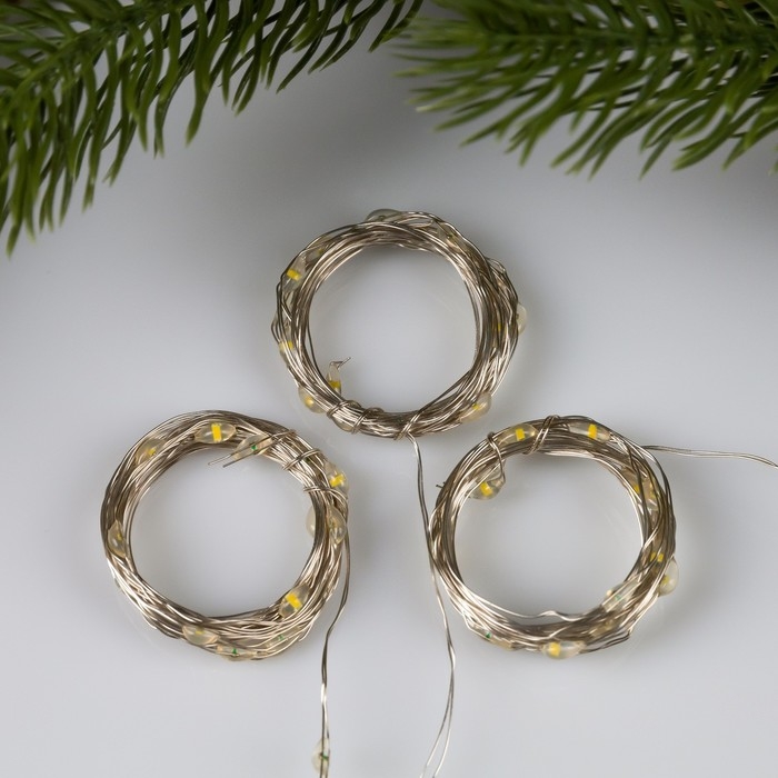 Набор гирлянд «Нить» 2 м роса, IP20, серебристая нить, 20 LED, свечение тёплое белое, 3 режима, батарейки AG13х3 (в комплекте), 3 шт.