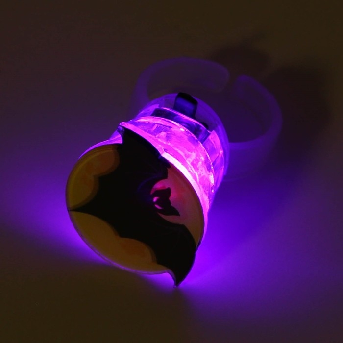 Кольцо детское с огоньком на Хэллоуин «Летучая мышь», безразмерное.