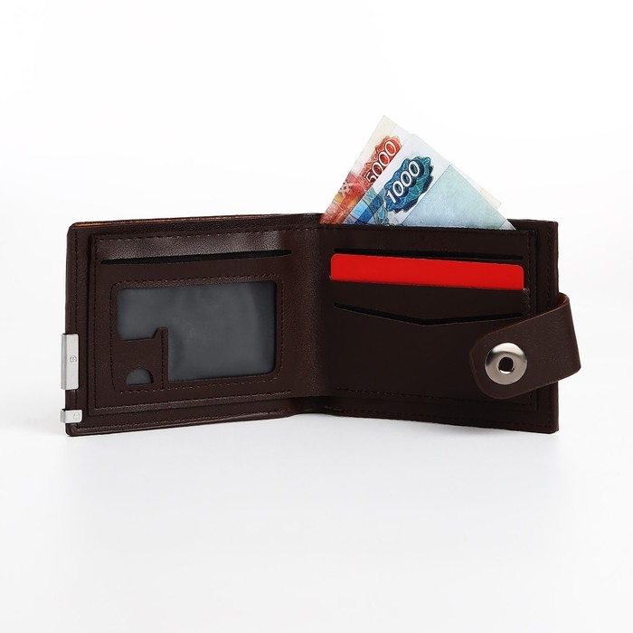 Портмоне мужское на магните, отдел для купюр, для карт, для монет, цвет коричневый