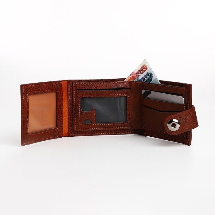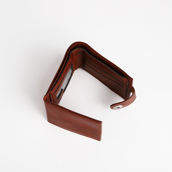Портмоне мужское на магните, отдел для купюр, для карт, для монет, цвет коричневый