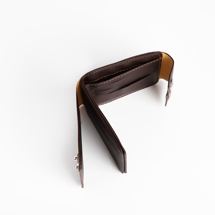 Портмоне мужское на магнитах, отдел для купюр, для карт, для монет, цвет коричневый