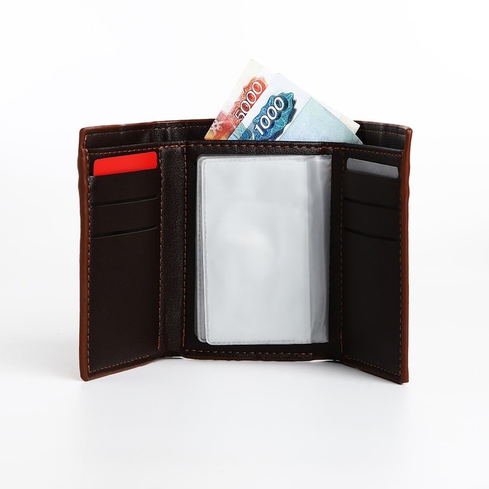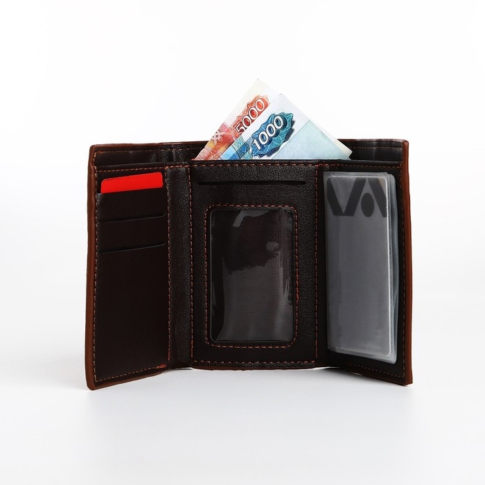 Портмоне мужское на магните, отдел для купюр, для карт, для монет, цвет коричневый