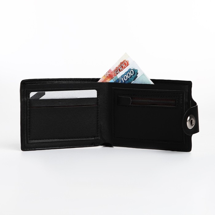 Портмоне мужское на магните, отдел для купюр, для карт, для монет, цвет чёрный