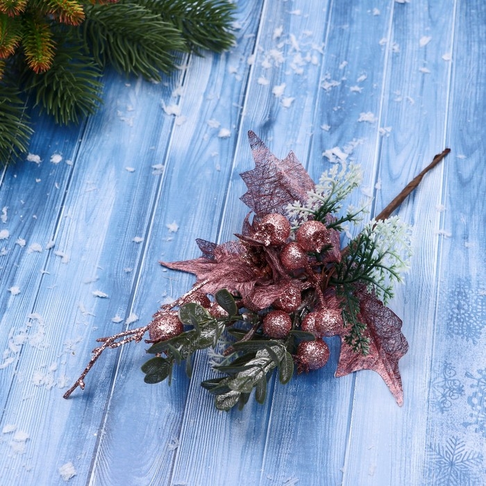 Декор "Зимнее восхищение" ягоды цветок листочки, 20 см, розовый