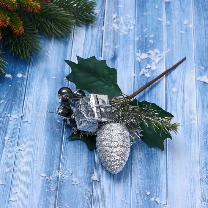 Декор "Зимние грезы" ягоды драгоценные камни шишка, 17 см