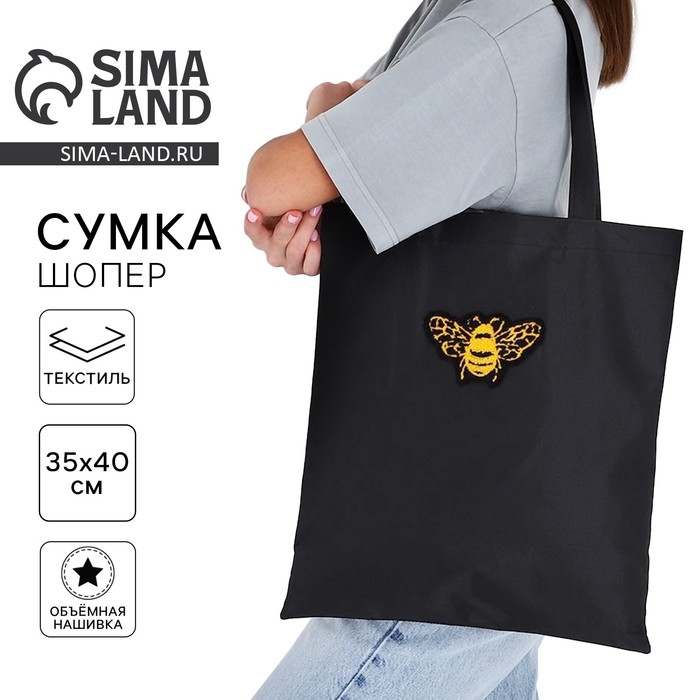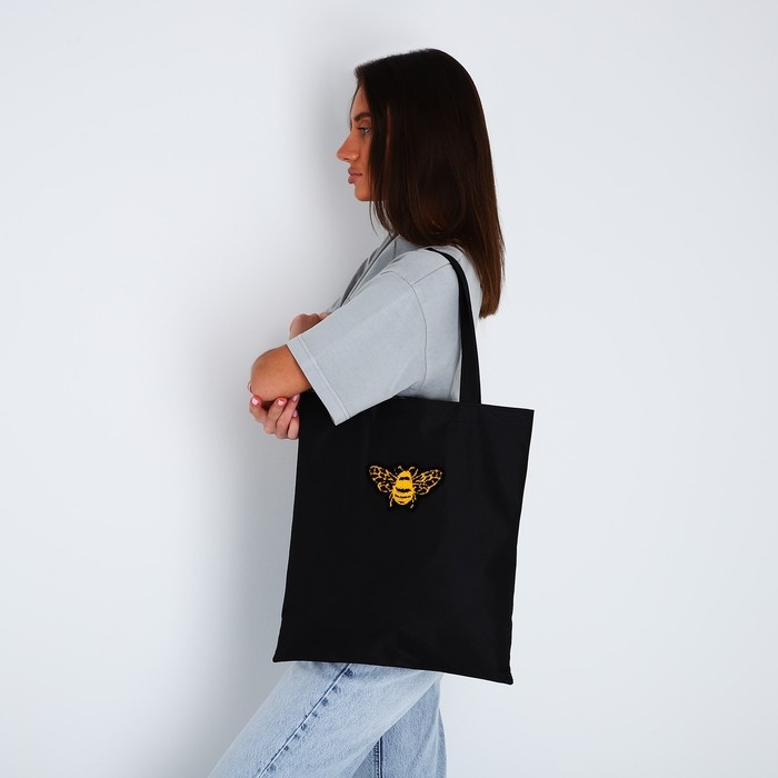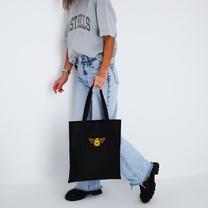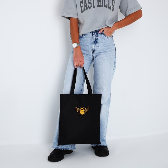 Шопер текстильный с вышивкой BEE , 40х35 см, чёрный цвет