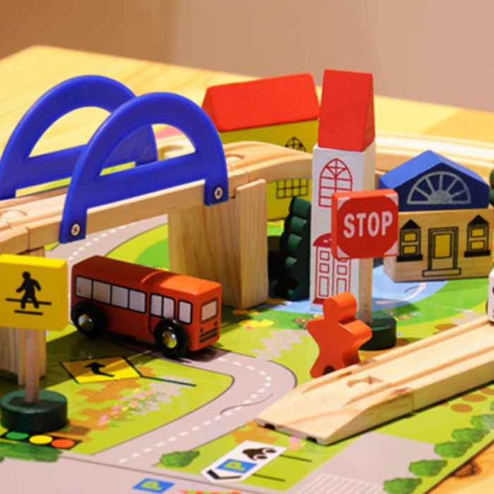 Железная дорога — это красочный набор для сюжетных игр. Большое количество декораций и фигурок позволяет собрать действующий комплекс круговой дороги.
