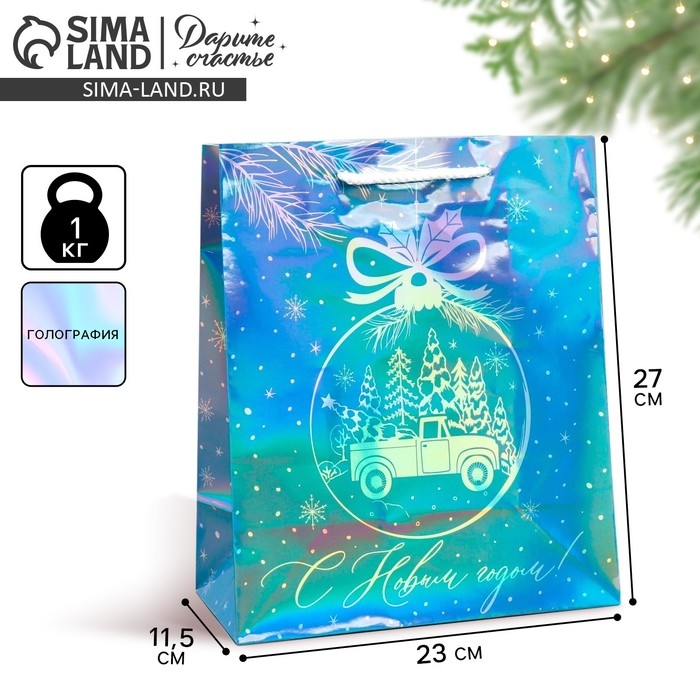 Пакет голографический «Морозко», ML 23 х 27 х 11.5 см, Новый год