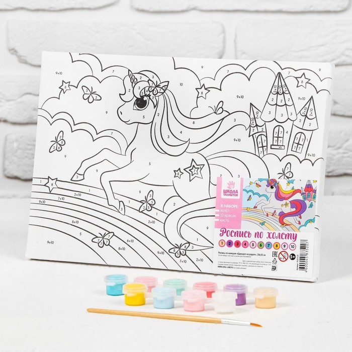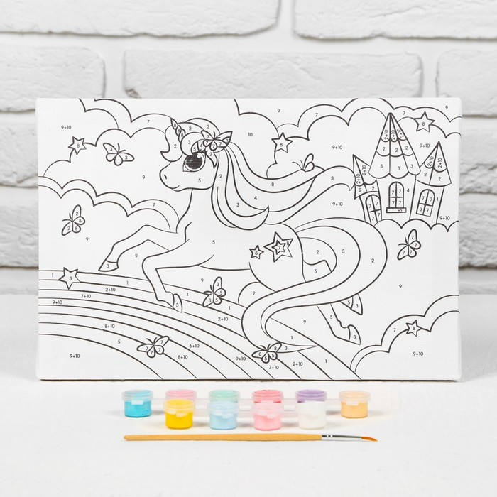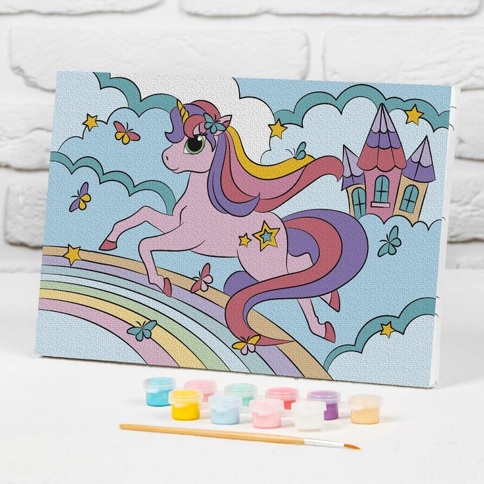 Картина по номерам для детей на подрамнике «Единорог на радуге», 20 х 30 см