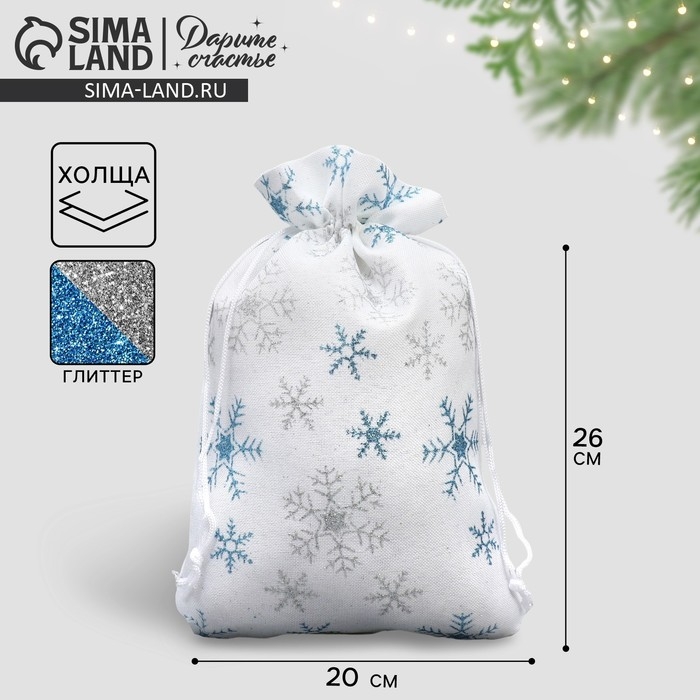 Мешочек подарочный холща «Новогоднее чудо», снежинки, 20 х 30 см +/- 1.5 см, Новый год