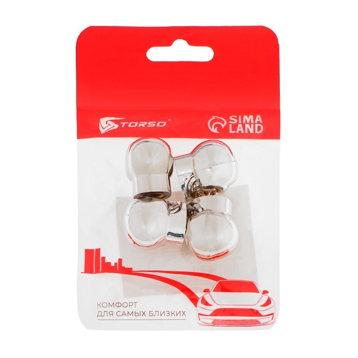 Колпачок на автомобильный вентиль TORSO, хром, набор 4 шт