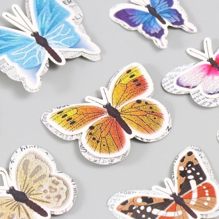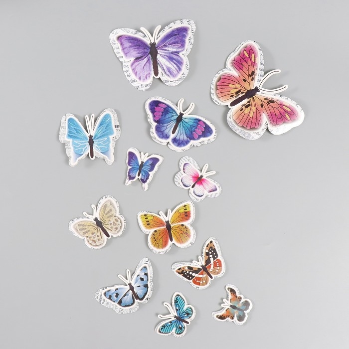 Бабочки картон двойные крылья "Газетные" набор 12 шт h=4-10 см