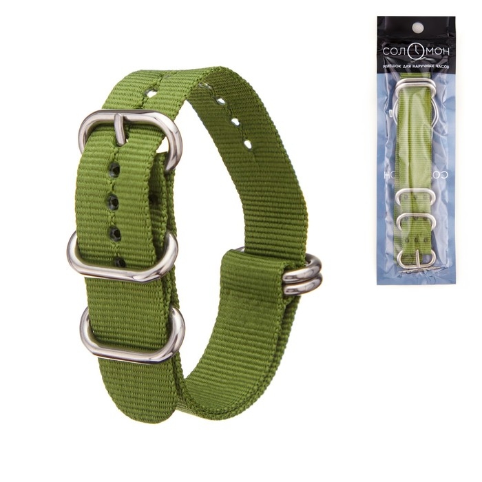 Ремешок для часов "Соломон", 20 мм, l-27 см, зеленый