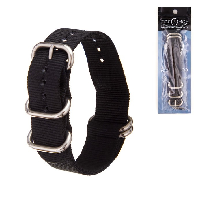 Ремешок для часов "Соломон", 22 мм, l-27 см, черный