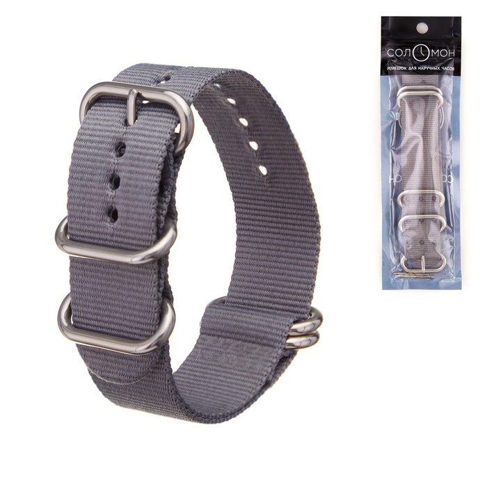 Ремешок для часов "Соломон", 24 мм, l-27 см, серый