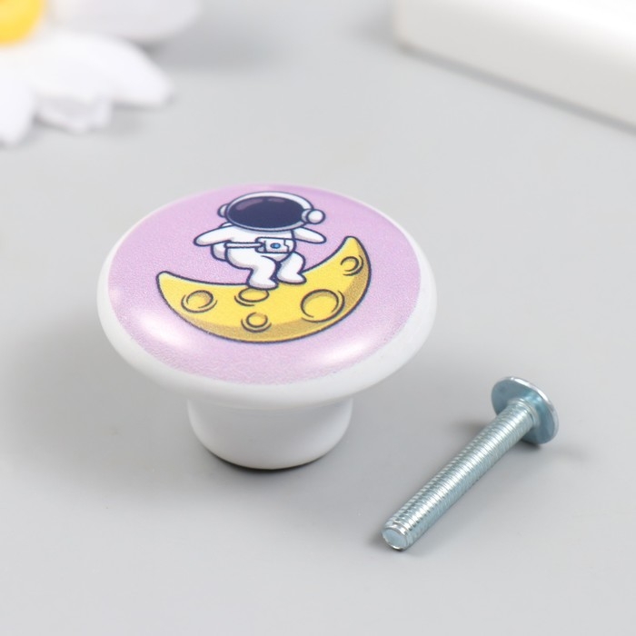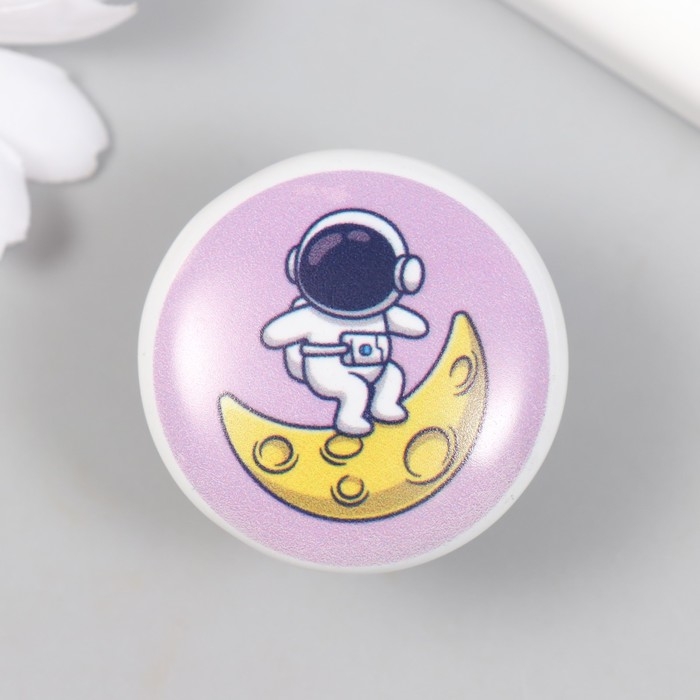 Ручка для шкатулки керамика, металл "Космонавт на месяце" 3,8х3,8 см