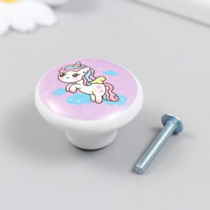 Ручка для шкатулки керамика, металл "Единорожка в облаках" 3,8х3,8 см