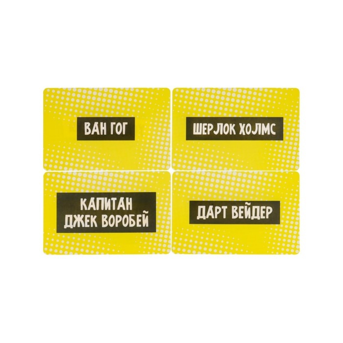 В этой веселой игре вам нужно будет угадать, кто или что вы. Для этого возьмите из колоды карточку и приложите ее ко лбу так, чтобы другие игроки видели, что написано на карте, а вы - нет. Задача игрока - догадаться быстрее остальных, какая карточка ему досталась. Для этого участники по очереди задают вопросы, на которые можно ответить только "Да" или "Нет". Кто соберет больше угаданных карточек, тот побеждает в игре!