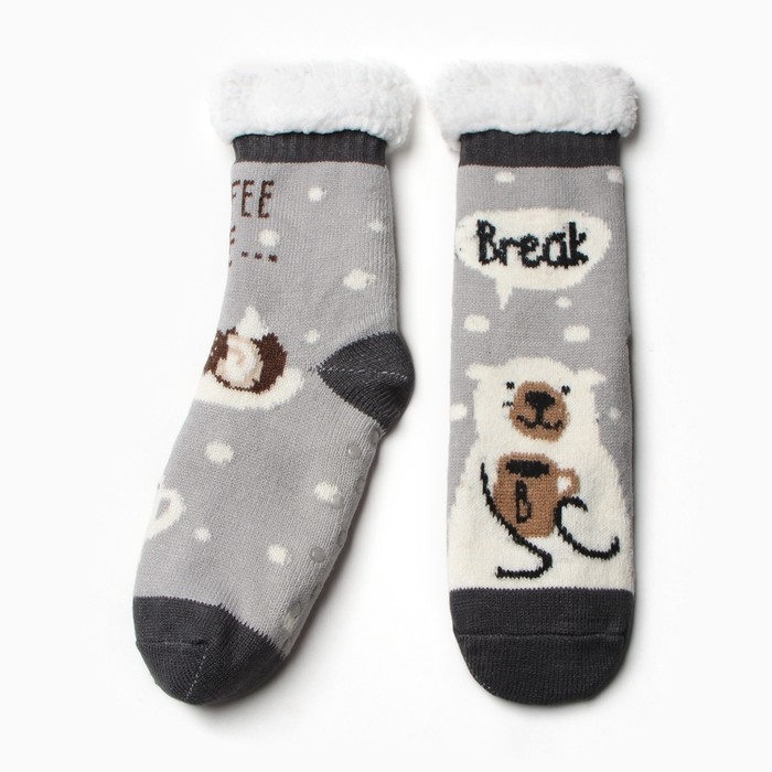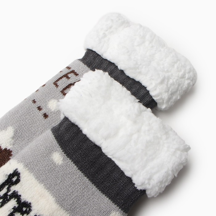 Носки женские с мехом, цвет серый/мишка, размер 36-40