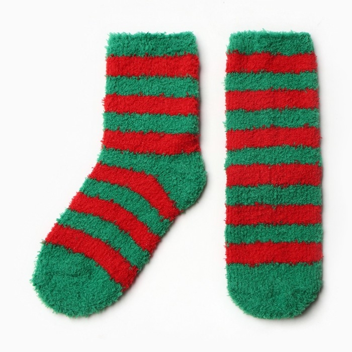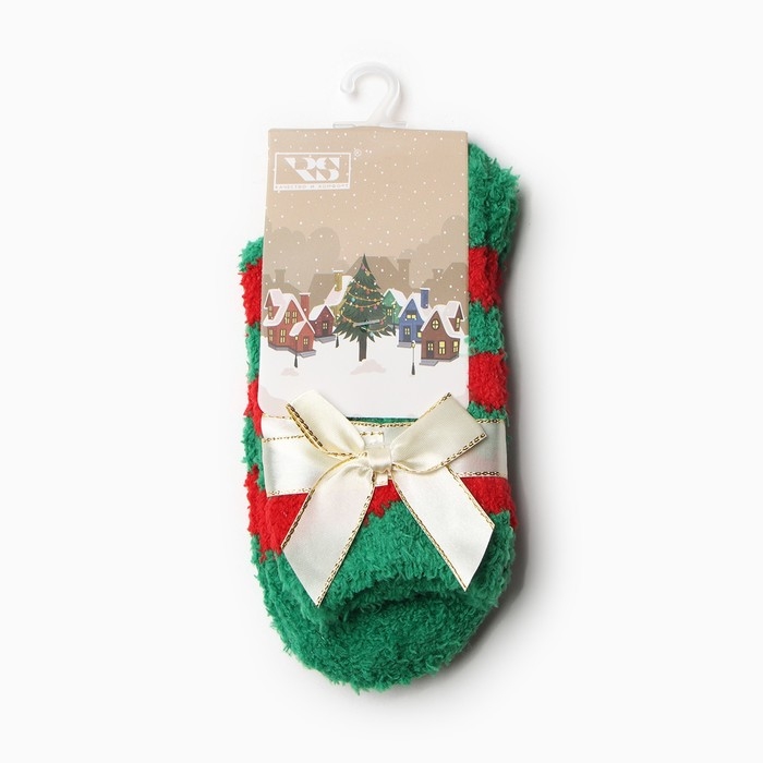 Новый год. Носки женские махровые, цвет красный/зелёный, размер 36-40