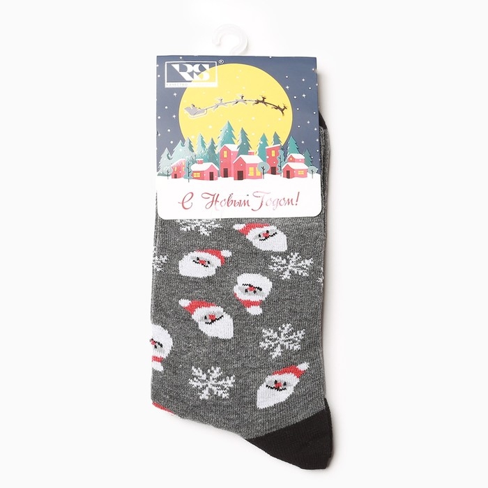 Новый год. Носки мужские Снежинки, хлопок, цвет серый размер 40-44