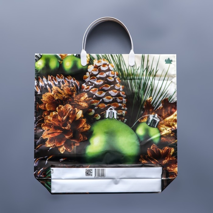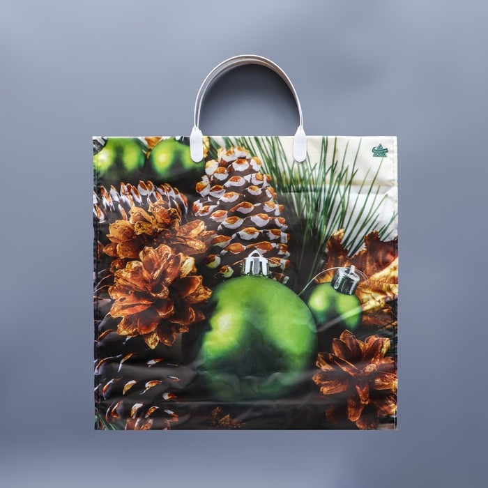 Новый год. Пакет "Зеленые шары", полиэтиленовый с пластиковой ручкой, 37 х 36 см.