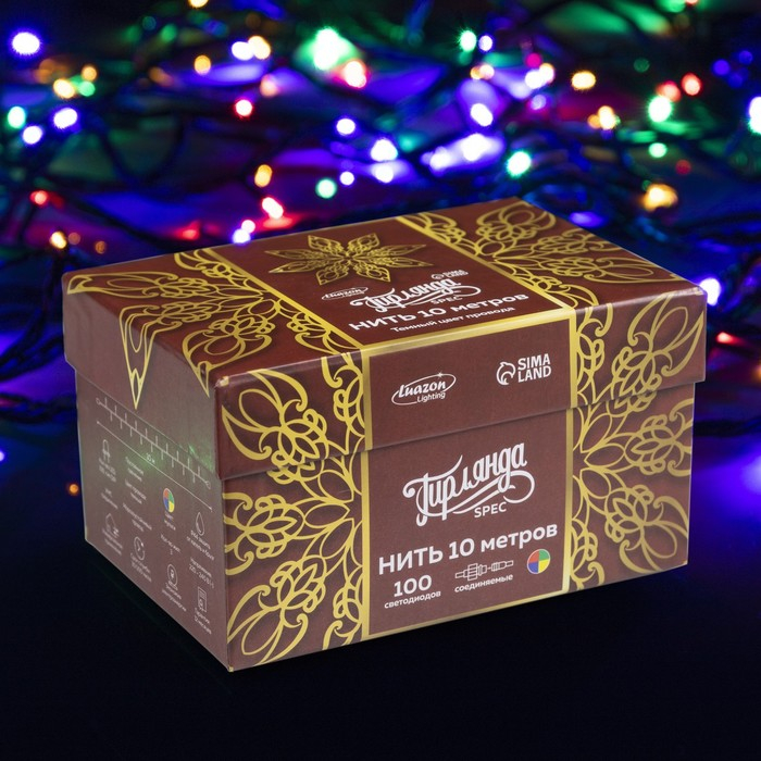 Гирлянда «Нить» 10 м, IP44, УМС, тёмная нить, 100 LED, свечение мульти, 220 В