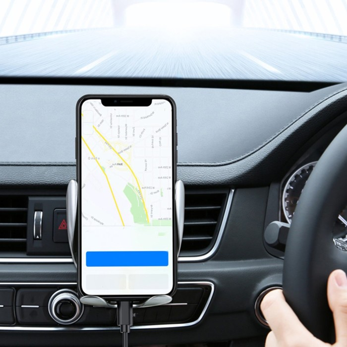 Держатель телефона с беспроводной зарядкой, самозажимной захват 6-9.5 см, черный