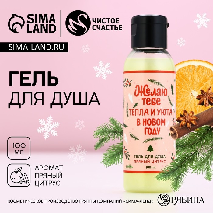 Гель для душа «Тепла и уюта в Новом Году!», 100 мл, аромат пряного цитруса, ЧИСТОЕ СЧАСТЬЕ