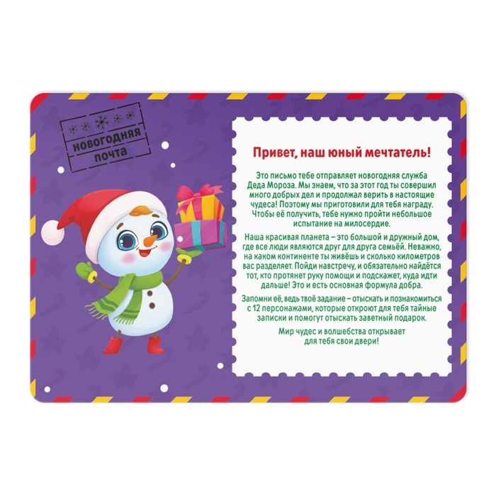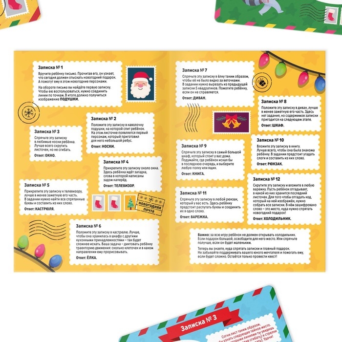 Новогодняя настольная игра-квест по поиску подарка «Новый год: Тайна 12 записок», 11 подсказок, письмо, 8+