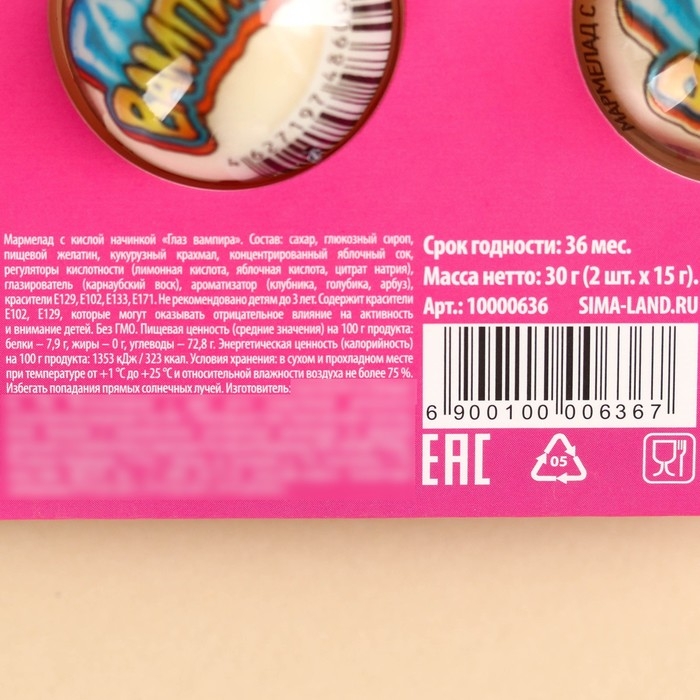 Мармеладные глаза «Профессионально закатываю не только глаза», 30 г (2 шт. х 15 г).