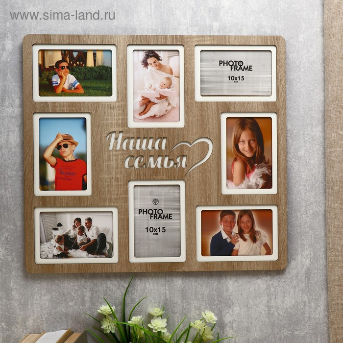 Фоторамка ХДФ "Наша семья" на 8 фото 10x15 см (пластиковый экран)