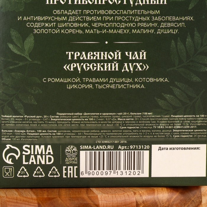 Подарочный набор «Долголетия»: травяной чай 20 г., безалкогольный бальзам 100 мл.