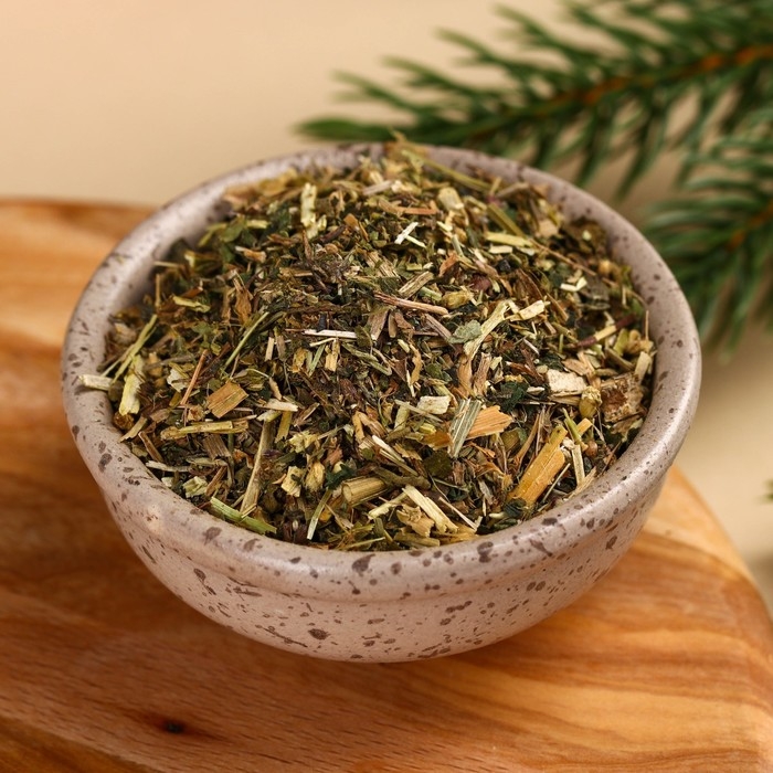 Состав: ромашка (цвет), душица (трава), котовник (трава), цикорий (трава), тысячелистник (трава).
