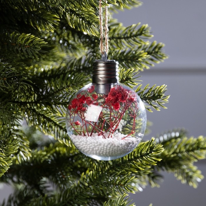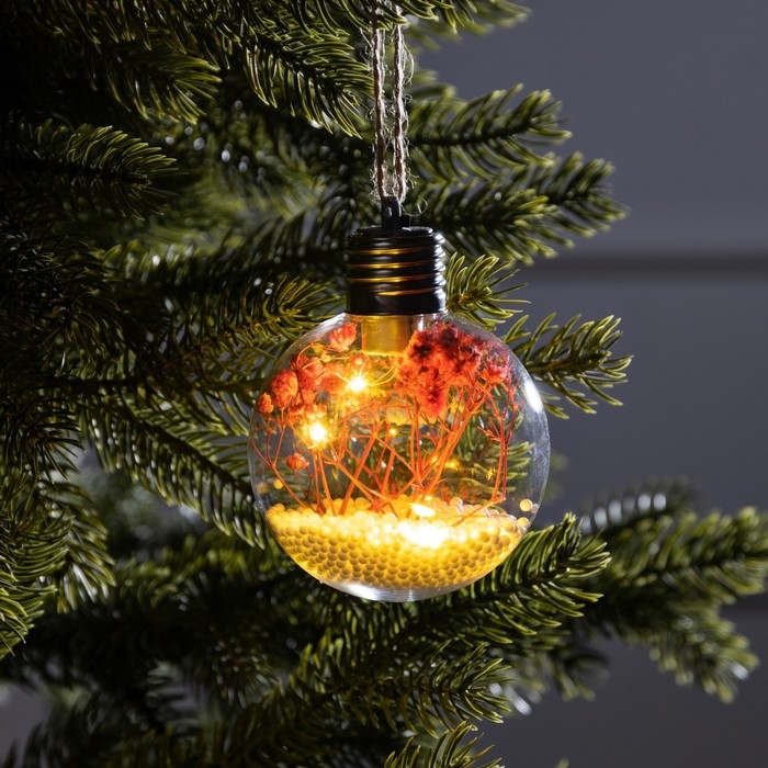 Ёлочный шар «Розовые сухоцветы», батарейки, 5 LED, свечение тёплое белое