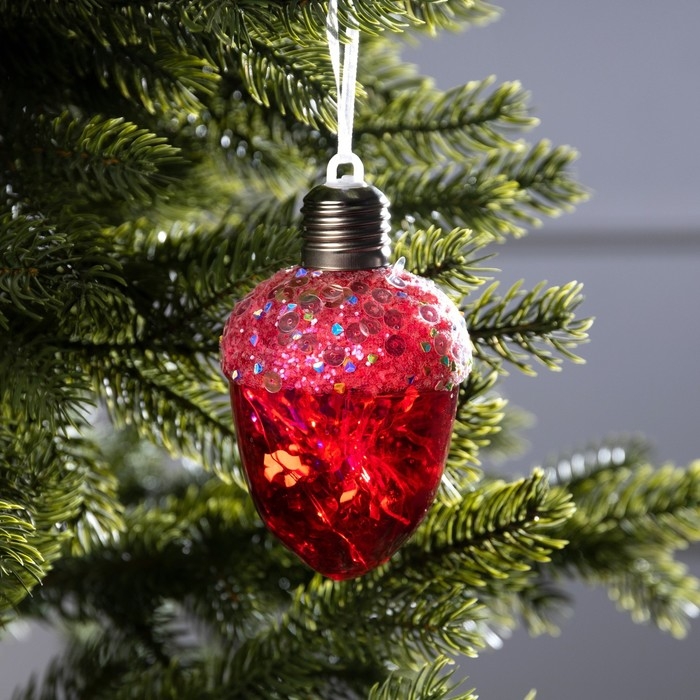 Ёлочный шар «Жёлудь красный», батарейки, 4 LED, свечение тёплое белое