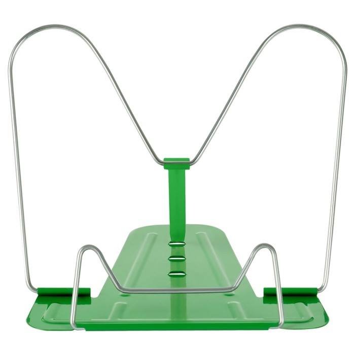 Использование подставки поможет сформировать правильную осанку. Складная конструкция изделия удобна при транспортировке и хранении. Поставляется в пакете с европодвесом. Материал подставки: металл/пластик. Цвет изделия: зелёный